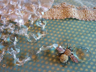 We were enjoying the most beautiful weather, so setting a table for lunch outside was a priority. I still had peonies, stock and wax flowers from the shower, so creating a new floral arrangement was a cinch. . The Italian tablecloth mixed with floral antique plates created a springtime color treat for the eyes.. The turquoise napkins were made to look like flowers and floral brooches were placed in the center as favors for the guests. Special silverware, crystal, and compotes were pulled out of storage and enjoyed for the day. The colors, turquoise and hot pink, are a great combination with chartreuse and the deep purple of blackberries. They looked beautiful in the vintage chartreuse and turquoise compotes with "Love Disarmed" berry spoons.