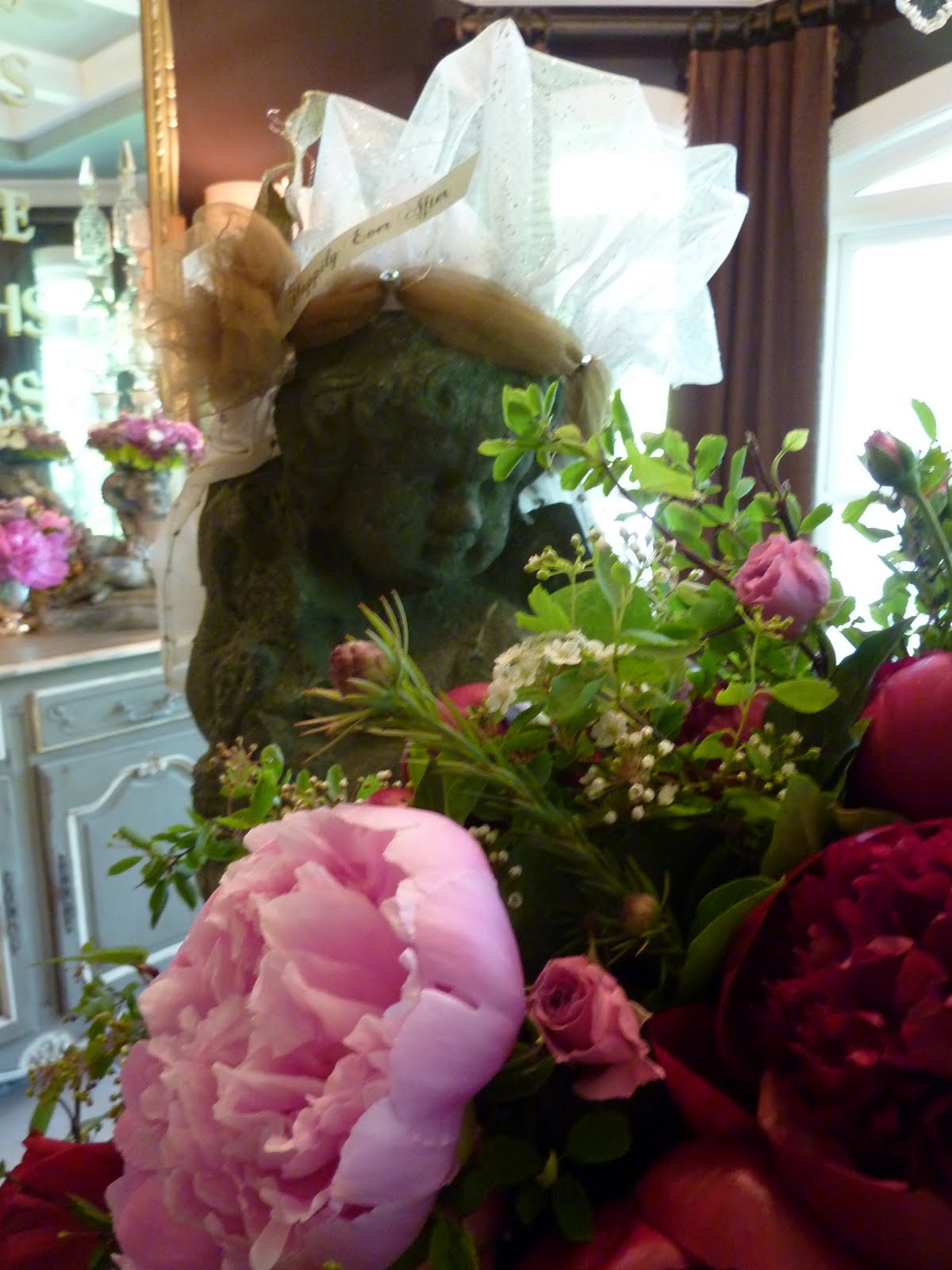 Bridal showers are girls time to connect, to get to talk, the time to appreciate just being female. Crowns can be worn with abandonment, flowers can be abundant, and female conversation is the way of the day. The day was beautiful, conversation flowed and the day meandered on to be a restful day.. People sat on the porch, ate lunch, drank wine and relaxed and enjoyed the soft breeze. The Plack girls did wear their crowns, but details to come on that detail and this shower tomorrow. Don't they look great?