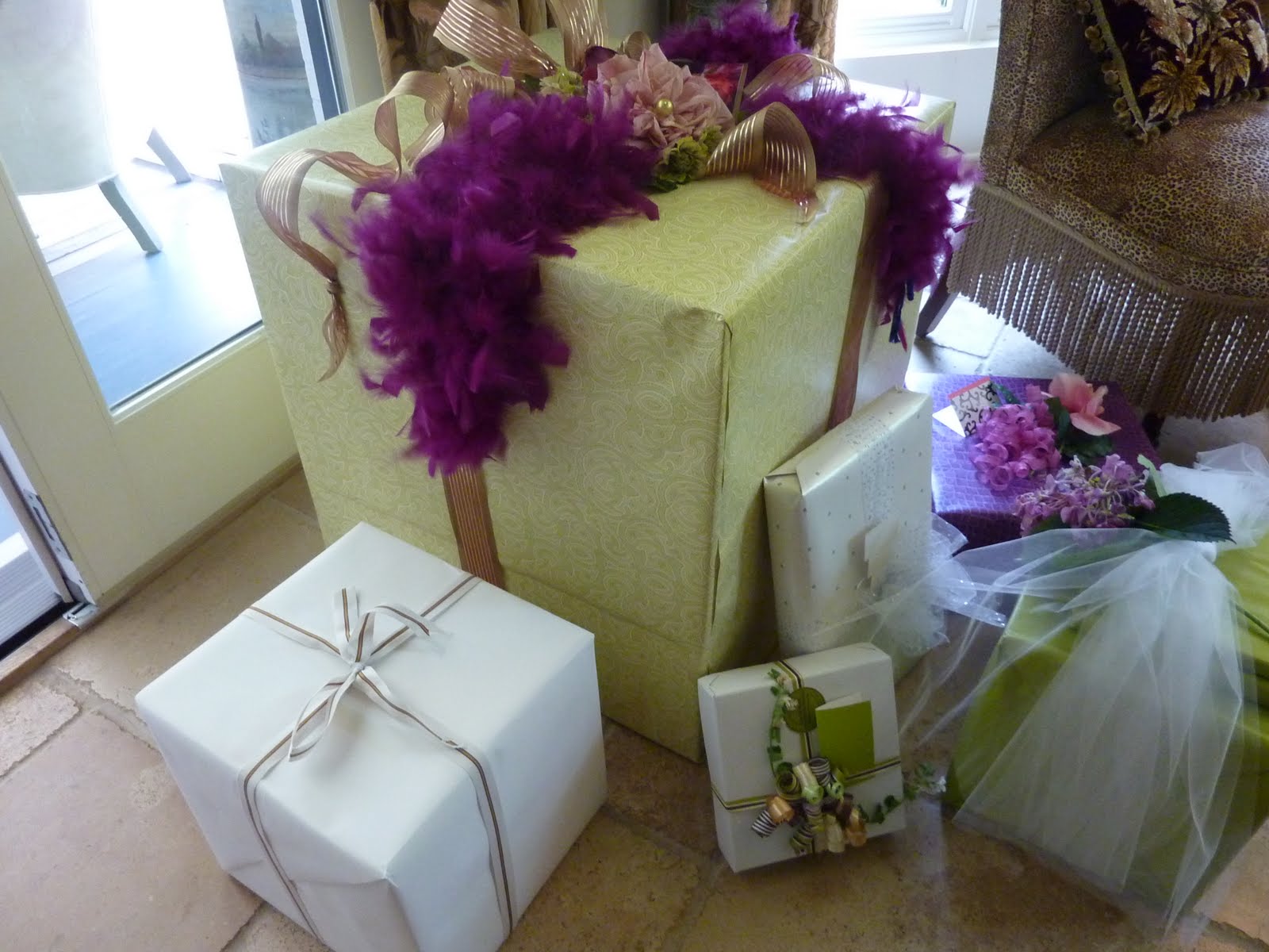 I am not sure what happened that caused the color purple to be so obviously present at the Bridal shower on Sunday. Guests were inspired to bring many beautifully wrapped gifts, and it seemed purple was a popular color. In a very romantic combination, tulle, rhinestones, feathers and purple flowers all created a purple feast for the eyes. Purple roses crowned the cherub statue on the buffet, while a rhinestone crown peaked out of the top. Beet Tartines on a silver tray added a bold purple color to the array of appetizers. The mother of the bride, the maid of honor and the bride looked simply purplelicious in a purple haze of color. And as I looked out to my garden, it seemed that I had planted mostly purple flowers this year. Maybe purple is the color of the season!
