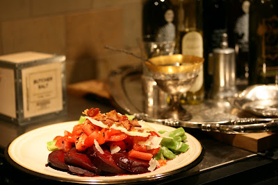 My friend Mariterese called me yesterday with a quick tidbit on how to easily roast beets. I absolutely adore them, but hate to peel them. Her little tip was a miracle cure - roast them in aluminum foil, just like a baked potato. Since I was in the mood for summer vegetables last night, I decided to try the technique. I scrubbed them and brushed them with a little olive oil and covered them with aluminum foil and baked them at 400 degrees for about 45 minutes ( they were large size). And just like Mariterese said - Viola! - the skins just slid off and I was left with a perfectly skinned gorgeous ruby red beet! Slicing them and adding Italian green beans and fresh chopped tomatoes from my garden to the plate, I had a hearty vegetable treat for dinner. I did use the shaved Parmesan cheese from Costco. It's a handy way to have delicious shaved Parmesan cheese on hand - available in their chilled pasta section and is called Cello's Grana Padano. Sprinkle a little sea salt, coarsely ground pepper, and crumbled bacon on top and you are ready for a lite summer dinner. Be sure to visit www.designsbygollum.blogspot.com for Foodie Friday for many interesting recipes and cooking tips.