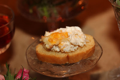 After publishing "Romancing the Home Entertains", we are continually testing and enhancing the recipes. Katha made the Crab Meat Dip during the holidays and found a little mistake in the preparation instructions. Sherry was listed in the ingredients in the instructions, but not in the ingredient list. After researching the original recipe from my childhood in Virginia, I found that sherry was not in the original recipe. So last night I decided to prepare the Hot Crab Dip for Mr.RTH and myself two ways- one with the sherry and one without! I prepared the dip according to the cookbook instructions and ignored the sherry in the preparation guidelines. Then I divided the recipe into 2 parts and added 1 1/2 Tablespoons of dry sherry to one half of the recipe and baked them both sepaarately! They came out of the oven bubbly and covered with cheddar cheese. I served them on toasted baguette slices and asked my husband for the verdict- with the sherry or not??? Both versions are delicious - it just depends if you like the flavor of sherry. My favorite was the sherry and my husbands was the original recipe. So if you like sherry, I would add 3 Tablespoons to the crab mixture before baking it. In addition to being an appetizer, this Hot Crab Meat Dip would be delicious as a small individual casserole for an entree with a green salad for dinner. I highly recommend the Jumbo Blend crab meat in the can in the deli section at Costco for this recipe- it's delicious and virtually free of shells.