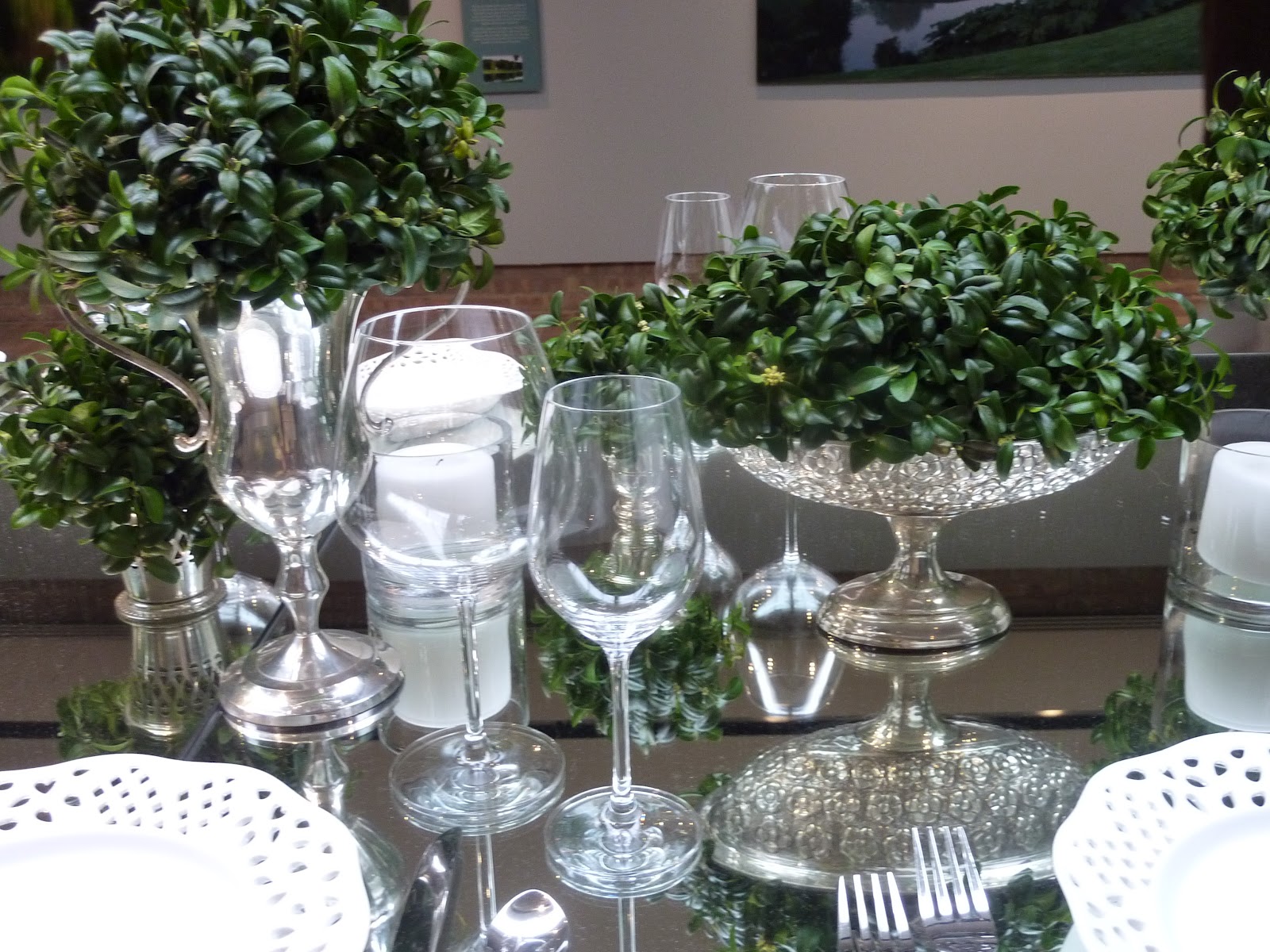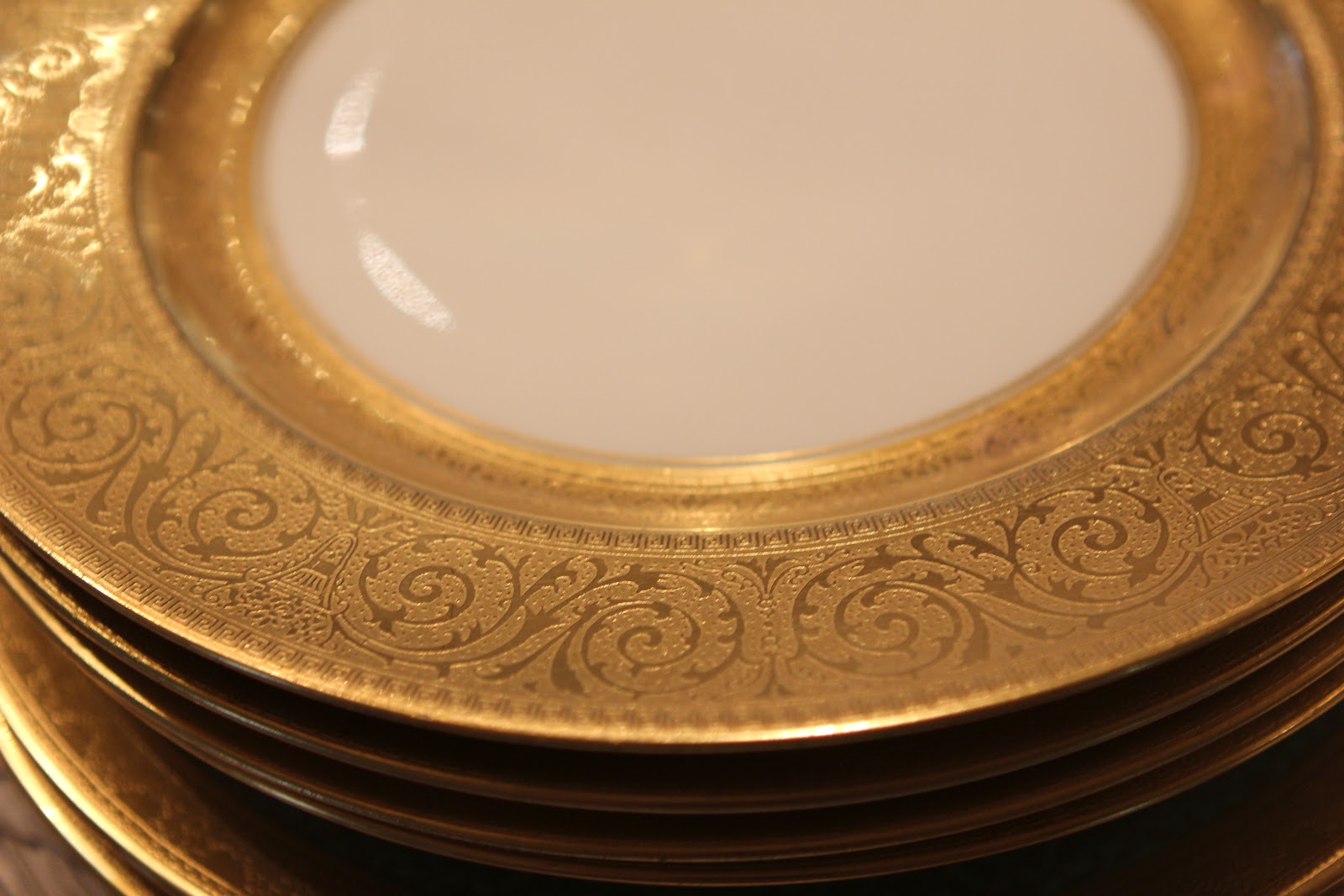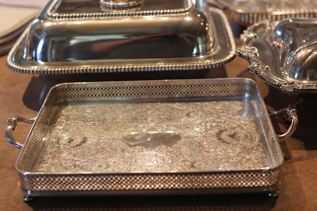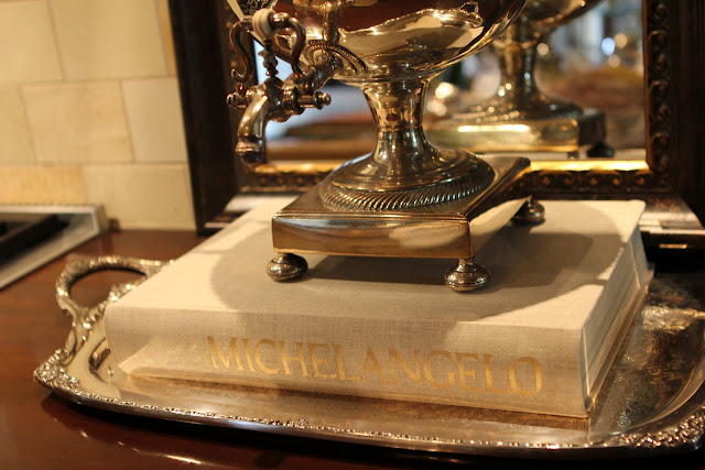 I rarely get the time to go to estate sales, but today I heard about one in Racine, Wisconsin and decided to make the hour drive to check it out! And am I glad I did! Awesome silver trays were waiting for me to grab for the store- I love the gallery style and so do our customers. The linens were exquisite, already starched and ironed and perfect for cocktails while entertaining! And for 5 years, I have been searching for a set of wide gold rim dinner plates and today they were mine! I also couldn't resist the Bavarian green and gold dinner plates, perfect for our Marie Antoinette table setting event that's happening on the 3rd of May. Several beautiful silver serving pieces were purchased for one of my customers that has just finished a beautiful new kitchen and needs dressy items for her butler's pantry. Look at this adorable silver dome- perfect for a small hot appetizer dish. But probably the most unique find was the tulip shaped set of cut crystal wine glasses- just gorgeous and will be very hard to part with- probably won't! The biggest surprise find- a 1956 art book of Michelangelo's work - pretty linen cover with gold lettering- a decorator's dream- cost $15! I had seen the same book on Friday for $250 at the Chicago Botanic Garden Antigue Show- so lucky me! Can't wait to share these new finds with my customers!