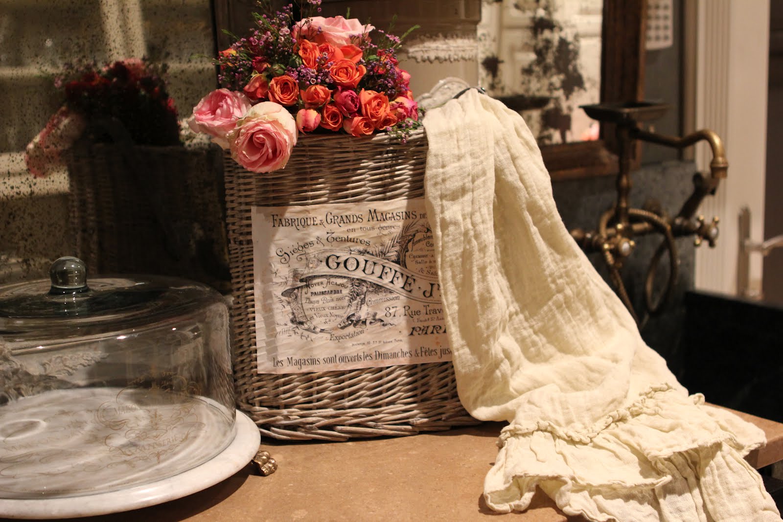 We have just received many new table linens that are meant to be used and enjoyed everyday. That means- no ironing- just wonderful linen that is meant to be wrinkled and used! So use them for everyday dining, throw them in the wash, dry and then use again and again! I must say that my very favorite is the new table linen collection from Bella Notte- especially the whispery muslin with the large ruffle edge. The first picture shows the fabulous hand towel- so romantic and pretty for everyday use! The white ruffled linen napkins with the velvet band are from Pom Pom and are charming. To launder, simply wash and then slightly dry. Remove from dryer and lay on counter and press out wrinkles and fold. The red and tan napkins are less expensive, but have a great look. Again, just damp dry and push out the wrinkles with your hands. The bronze monogrammed towels are available with all initials and are made from vintage French linens. They are exquisite and perfect to use as napkins, bar towels or hand towels in a powder room. Finally, the "Bon Appetit" linens napkins are perfect for everyday dining- whimsical and very soft and also launder beautifully. So say good bye to paper napkins forever and enjoy these everyday delights! They add a little romance to that Kraft macaroni and cheese dinner!!!!