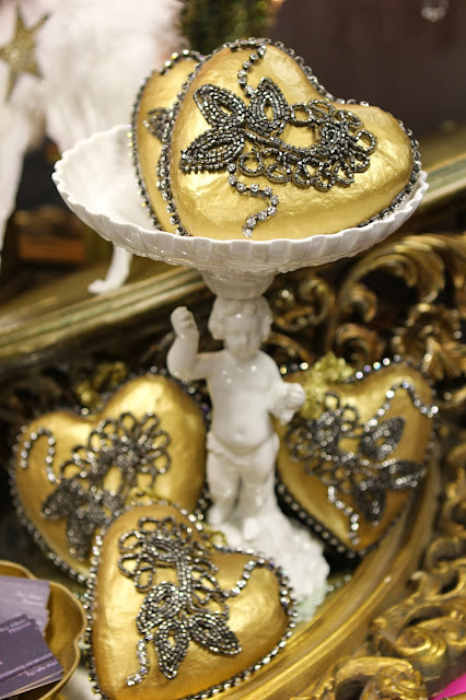 Angels are embellished with vintage velvet shawls, rhinestone belts, and crowns