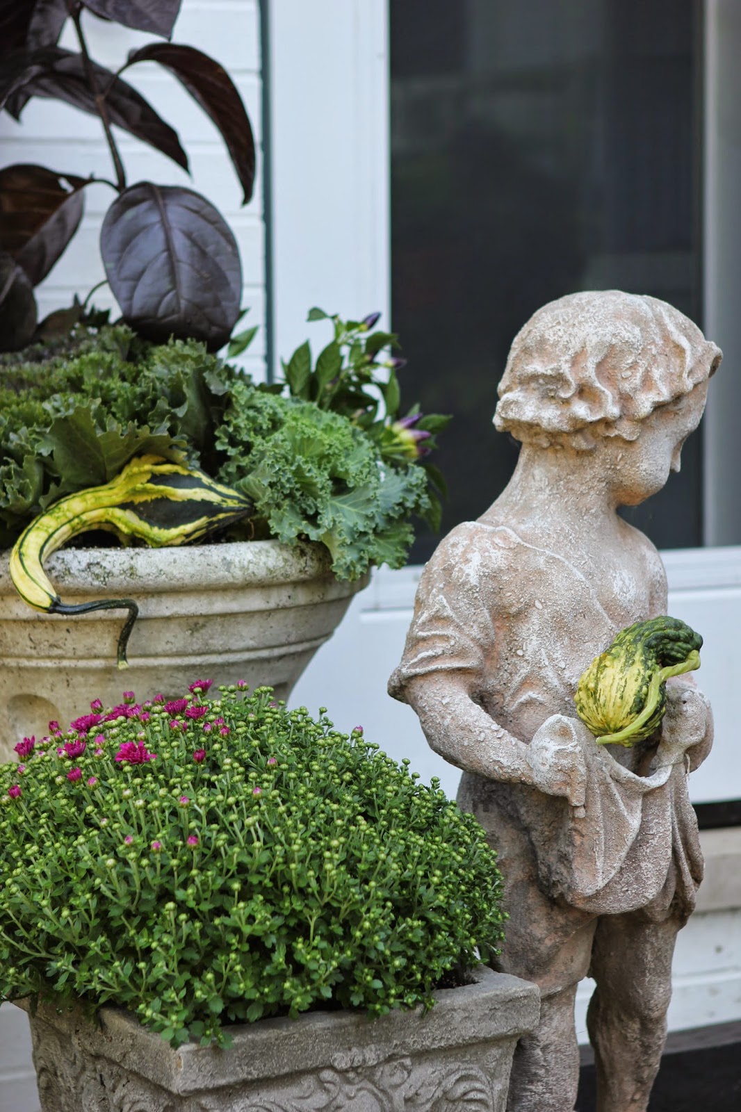 gussied up a bit. I hide those broken arms by tying a pot of kale into her midriff.